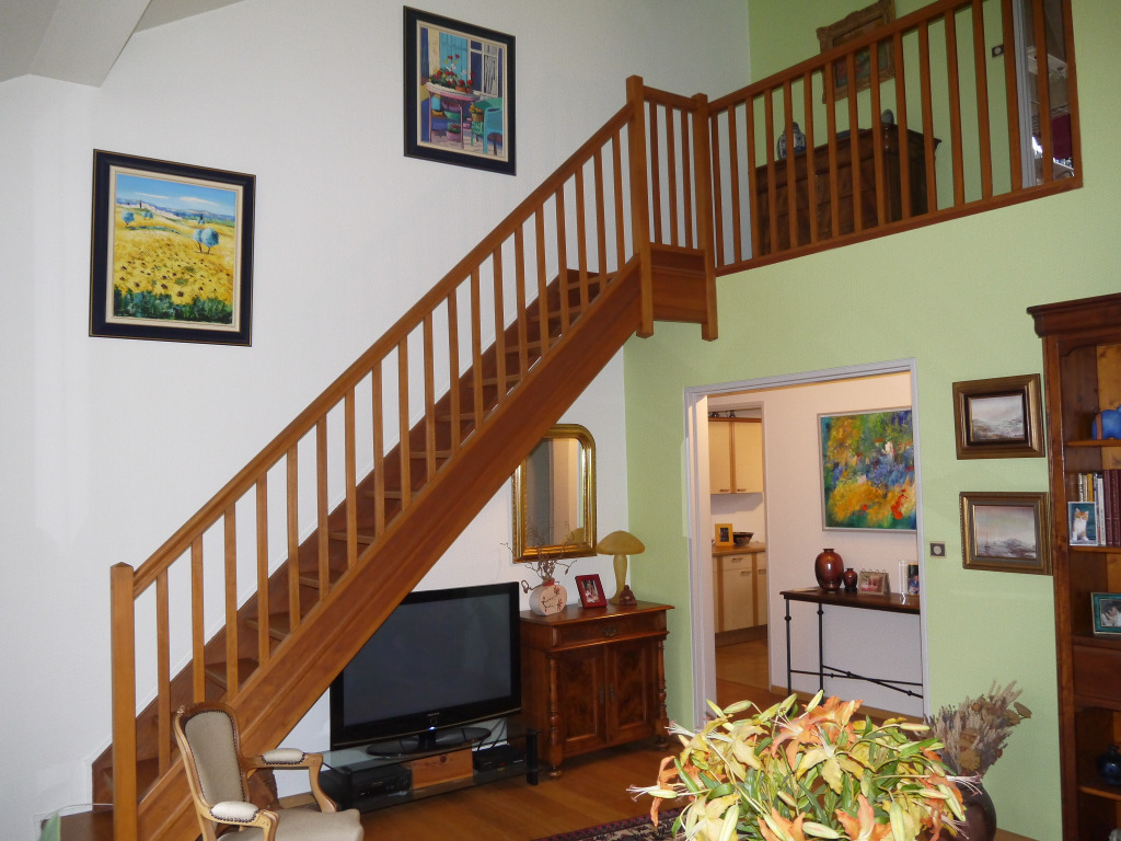 en impasse, dans petit immeuble de dix lots principaux,chaleureux duplex 4p, 90m² sol, dernier étage, séjour cathedrale avec mezzanine et terrasse exposée sud face a la nature, salle à manger, 2chambres (poss 3e), cuisine et sdb éq, balcon, cave, parking, charges 131€/mois, beaucoup de cachet!